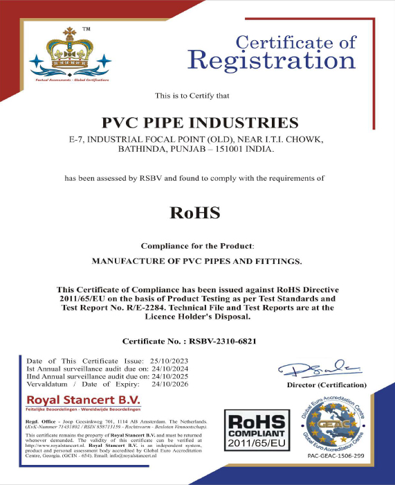 Certified as ISO 9001: 2015 company. Once our customer comes to us they completely forget worrying about quality. This dependable quality that gives electricians, plumbers, owners one less thing to worry, makes us a trusted name in pvc pipes and fittings. With quality product we provide quality support for our dealers, suppliers and customers.